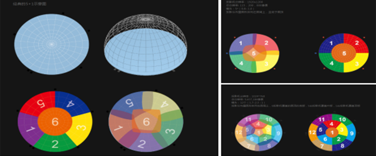 球幕融合是一种新兴的展示技术,它打破了以往投影图像只能是平面规则图形的局限。通过多台投影机把图像投射到球形装置的内壁屏幕上,对画面位置进行几何校正,并对重叠区亮度、色彩进行融合修正,最终使观众看到整个球幕上布满图像,并且画面完整统一,没有拼接痕迹。X-LIAN球幕融合软件几乎适用于所有的规则或者不规则的穹顶和球幕表面,如项目中常见的半球、碗状、蒙古包形状、U形或者其他类似穹顶形状的表面。
